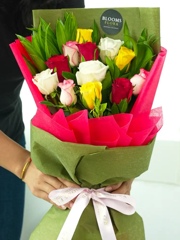 12 Colored Rose Bouquet
